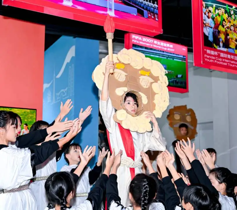 The tour was followed by a drama performance, The Spark, by students from Tianfu No. 7 High School, which vividly illustrated the theme of cultural inheritance. This acclaimed work, previously staged at the Ancient Theater of Messene in Greece, draws inspiration from the myth of Prometheus bringing fire to humanity. It innovatively blends the elements of Sichuan Opera, puppetry, and ancient Greek dramas into an excellent performance that seamlessly integrates the symbol of sparks as the origin of civilizations with the Olympic spirit. The students’ performance created a unique cultural atmosphere for the inauguration of the exhibition.